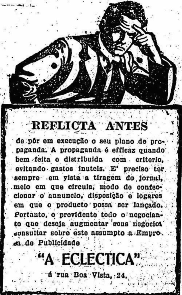 No Brasil, o jornalista João Castaldi fundou em São Paulo a primeira agência de publicidade em 1914, a Eclética. O negócio era baseado na captação de anúncios nos impressos ganhando uma comissão de 20%.